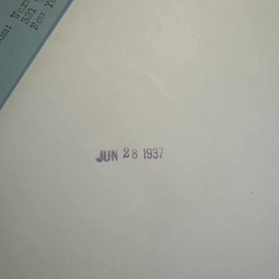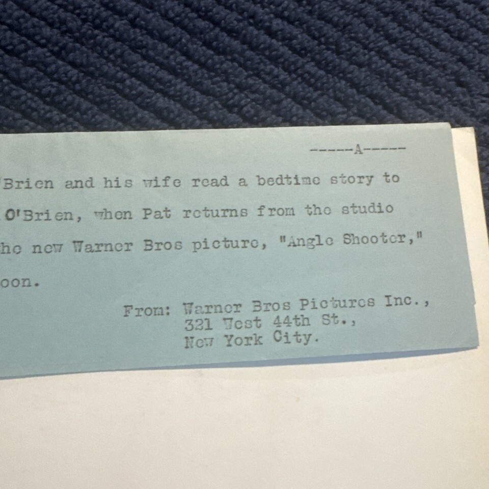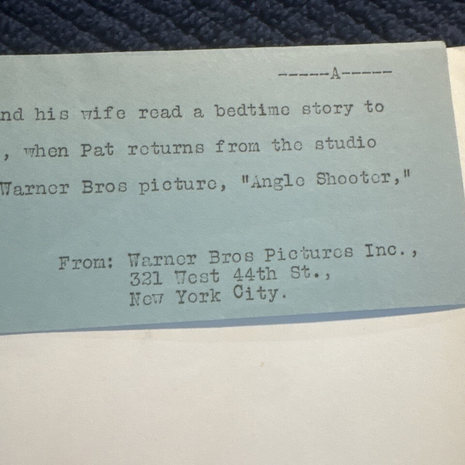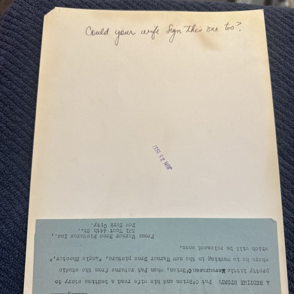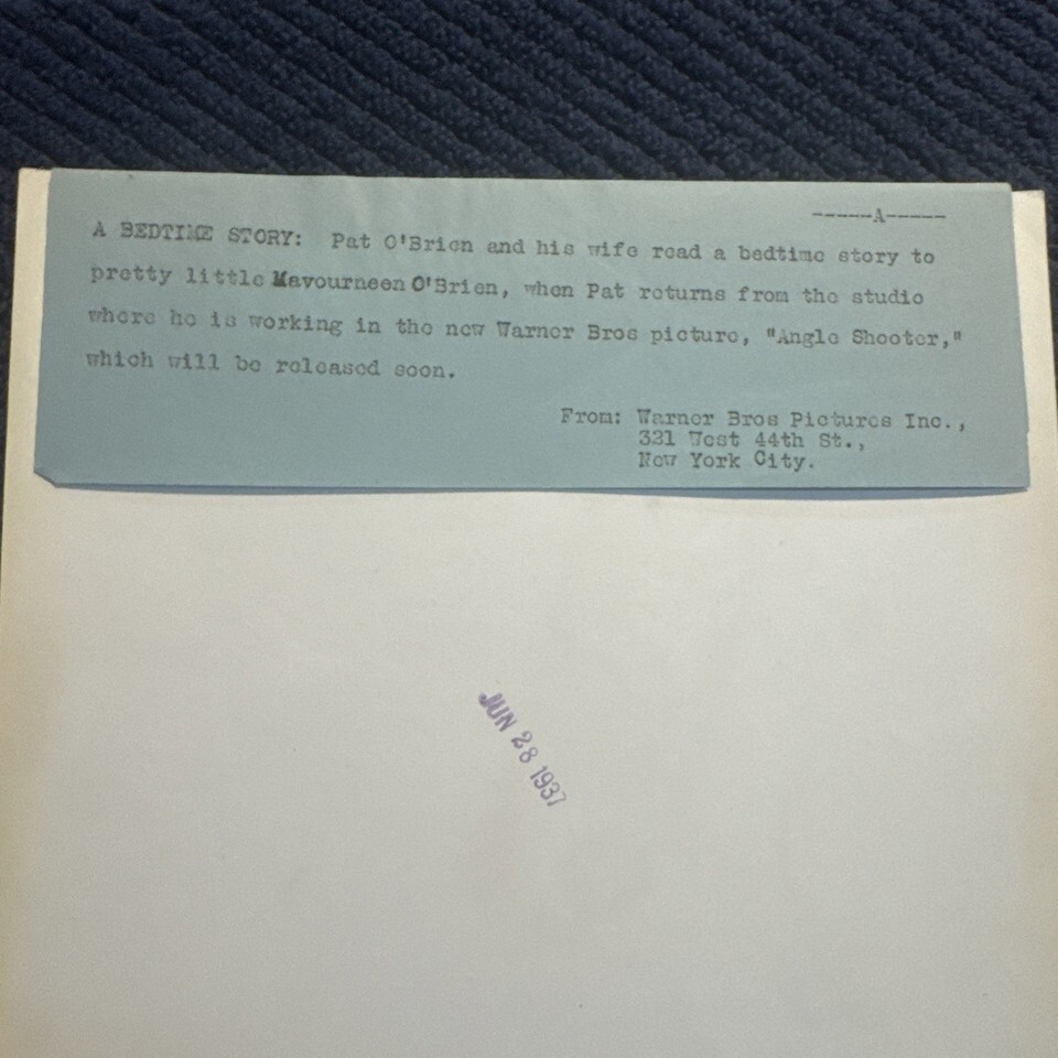 Photo is above average condition with light evidence of handling and wear. Warner Brothers note attached, 1937