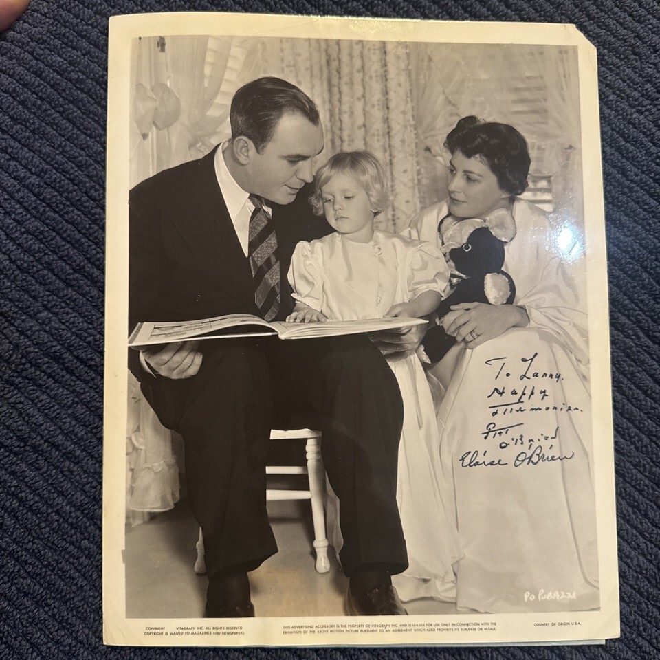 8 x 10 studio photograph from 1937. Signed by Pat o?Brien and Elaine O?Brien with the inscription: To Lanny, Happy Memories