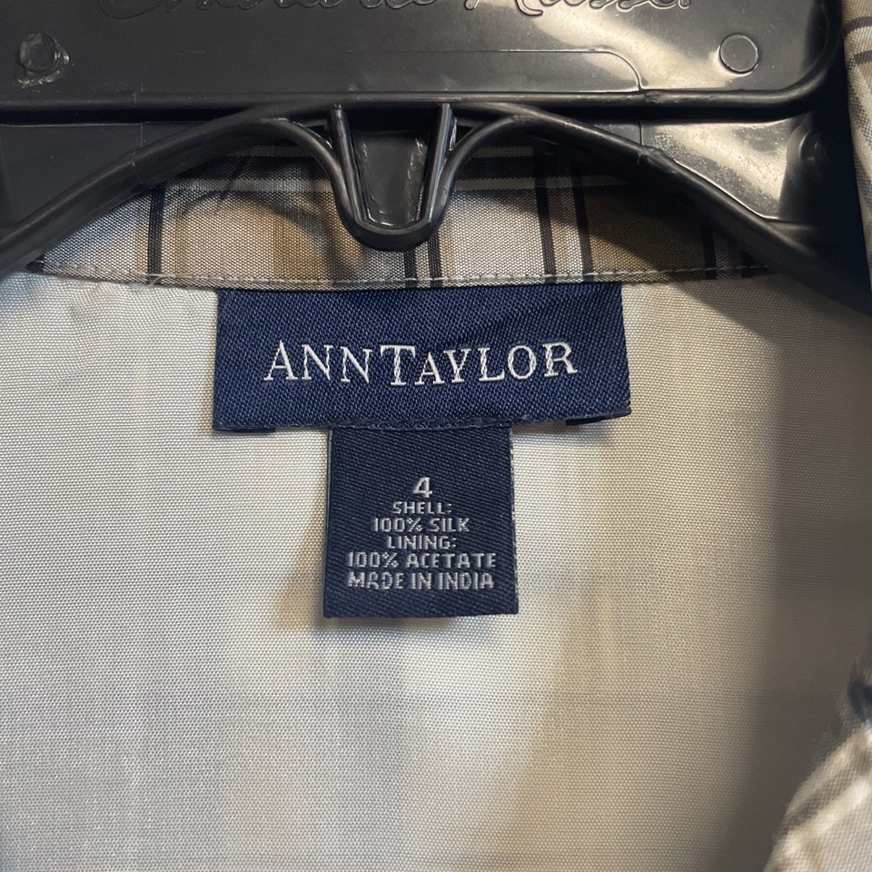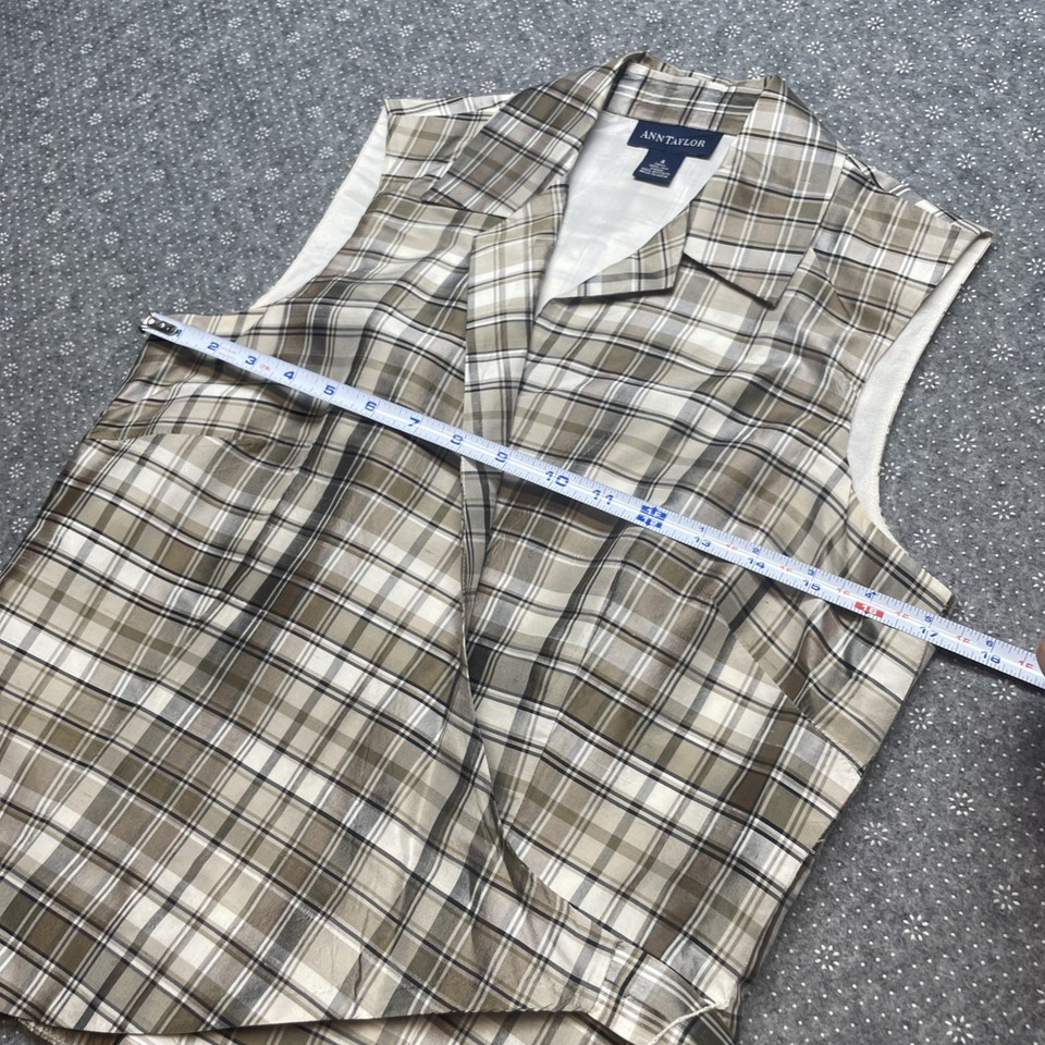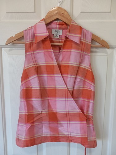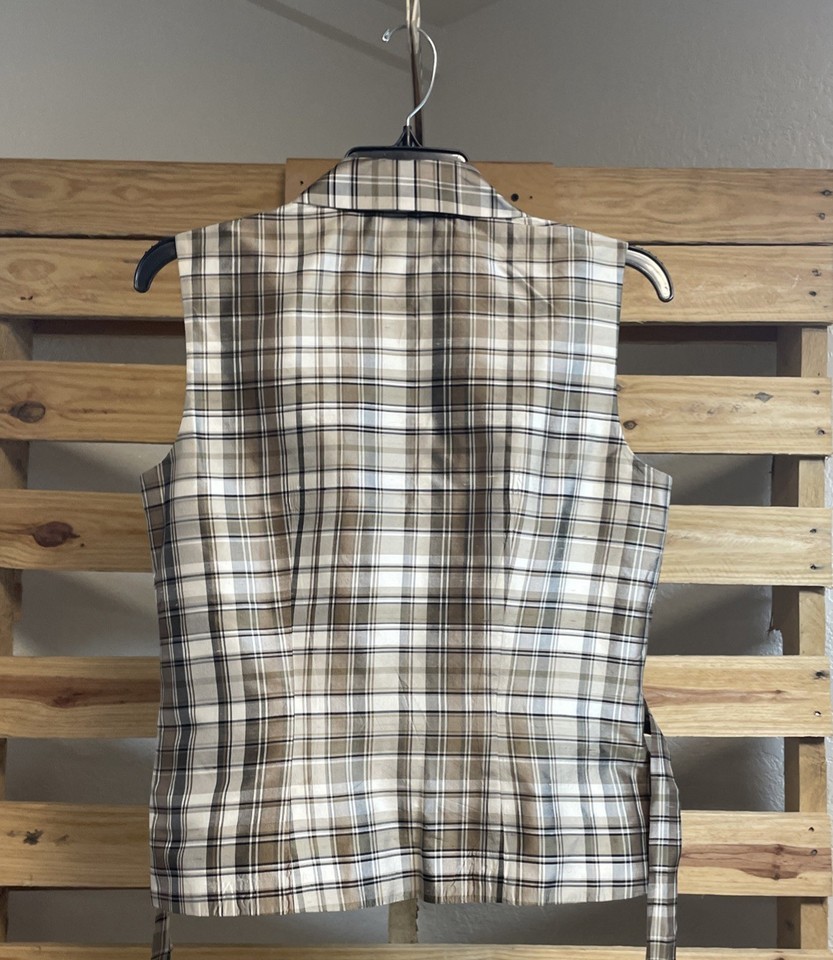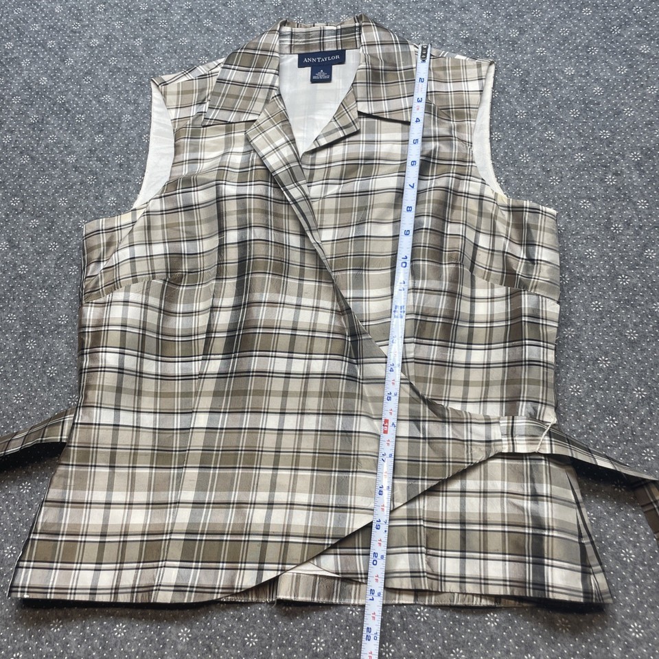 Ann Taylor 100% Silk Plaid Brown Tan Wrap Sleeveless Top Size 4 BBL JD