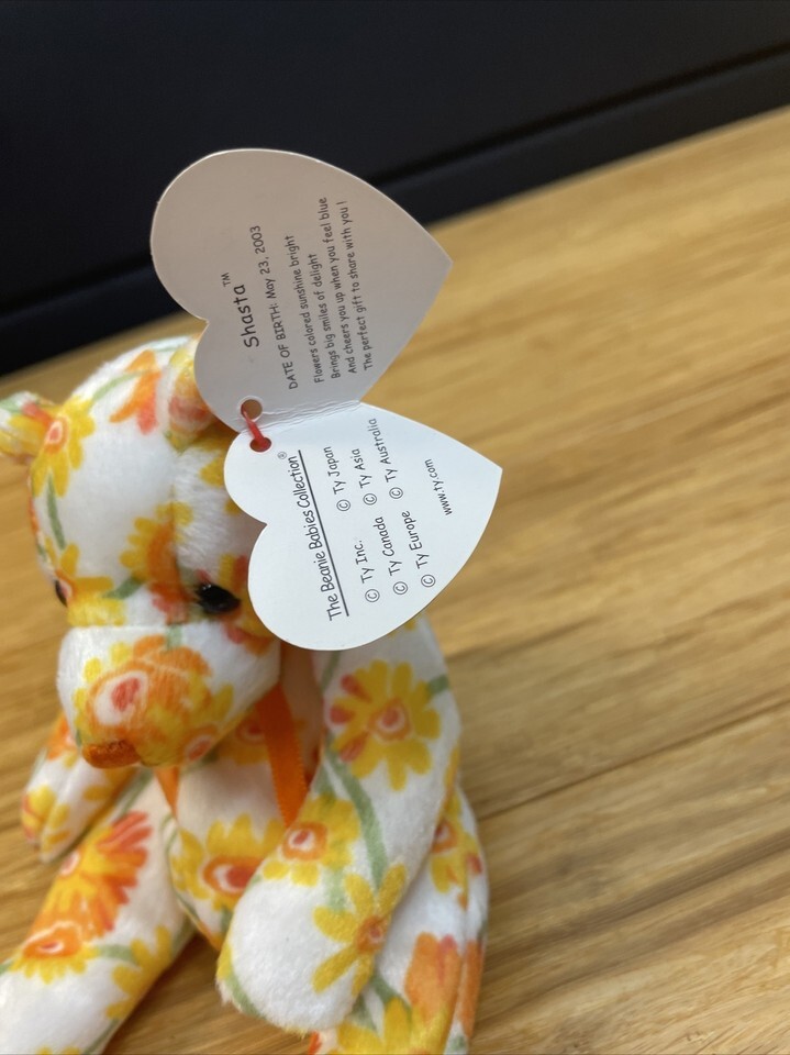 Ty Beanie Babies Shasta the Bear Plush 2003 Flowers Floral KG JD
