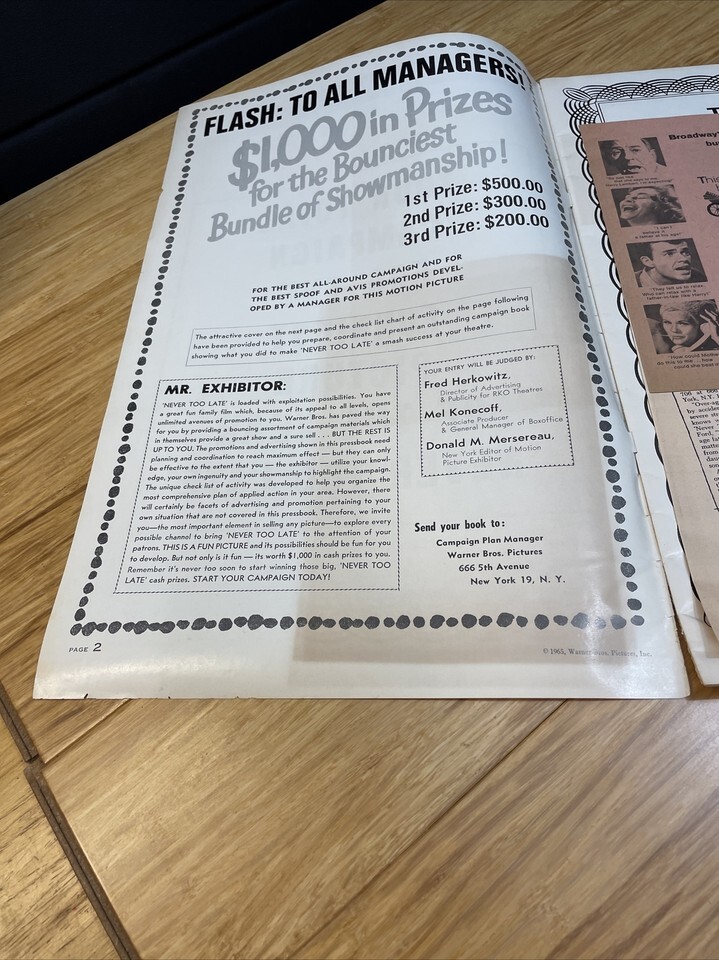 Never Too Late Press Book Kit Movie Poster 1965 Connie Stevens O'Sullivan KG