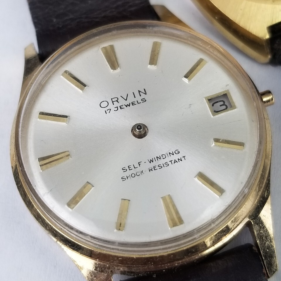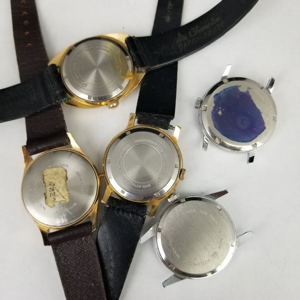 vintage mens watch lot x5 bands movements cases gold tone Orvin PARTS OR REPAIR