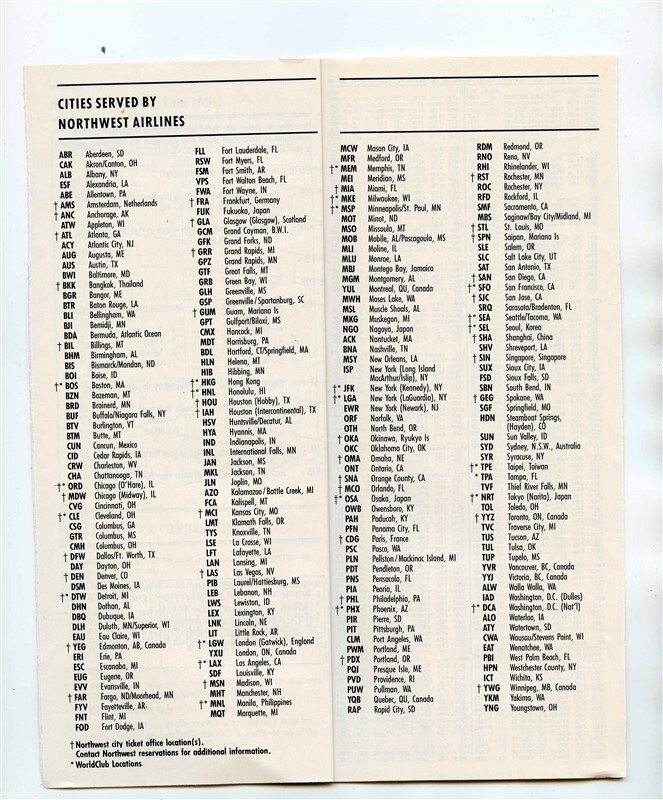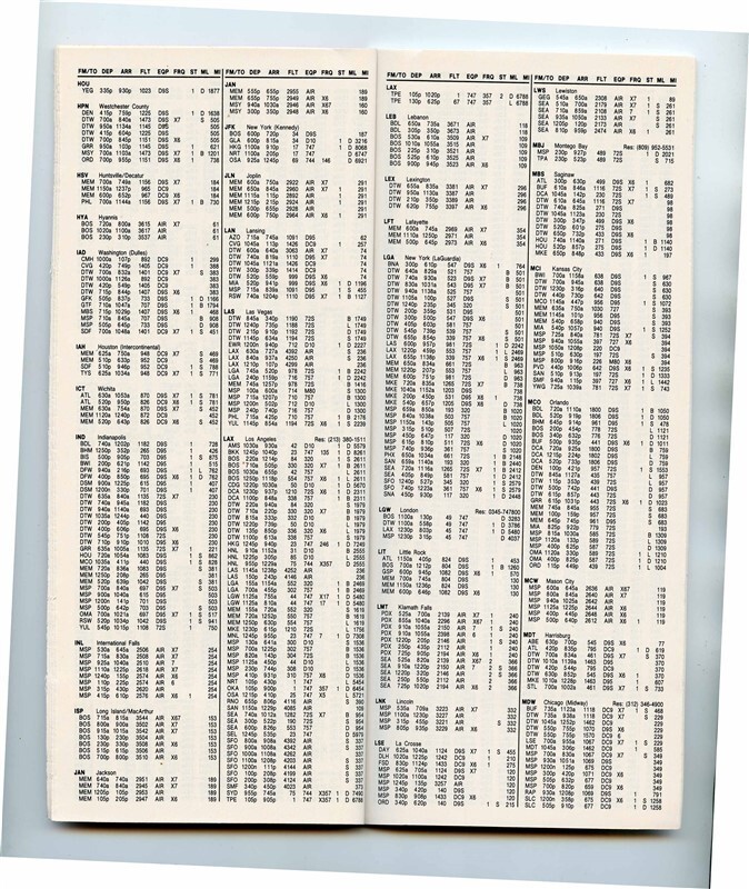Northwest Airlines September 1991 Frequent Flyer Timetable
