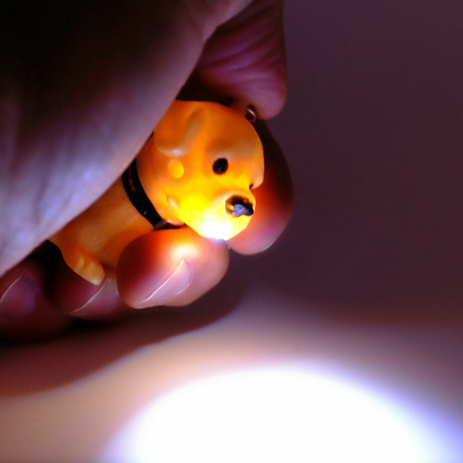 Simply push the button and a small but powerful light will brighten things up while it make fun barking dog sounds.