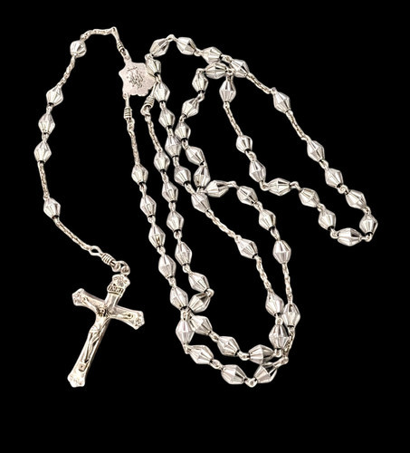 METAL ROSARY 26" Necklace 6" Drop 6mm Silver and 10 similar items