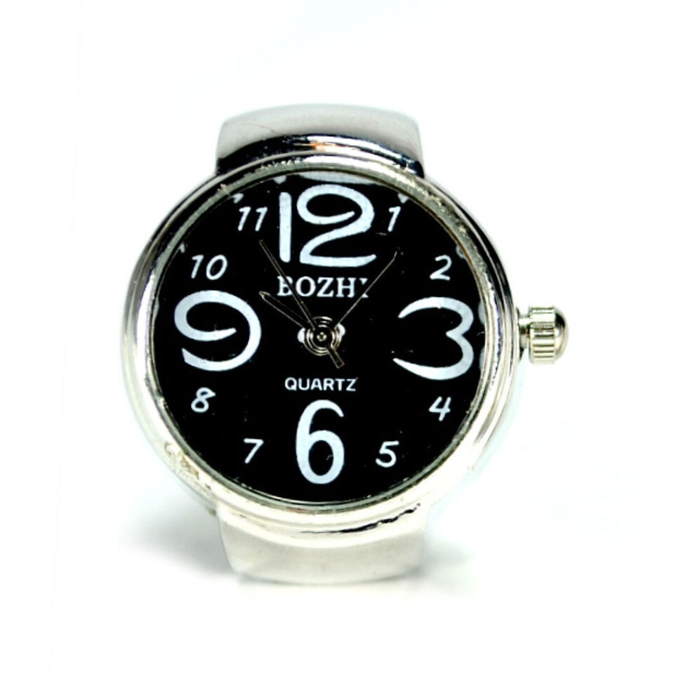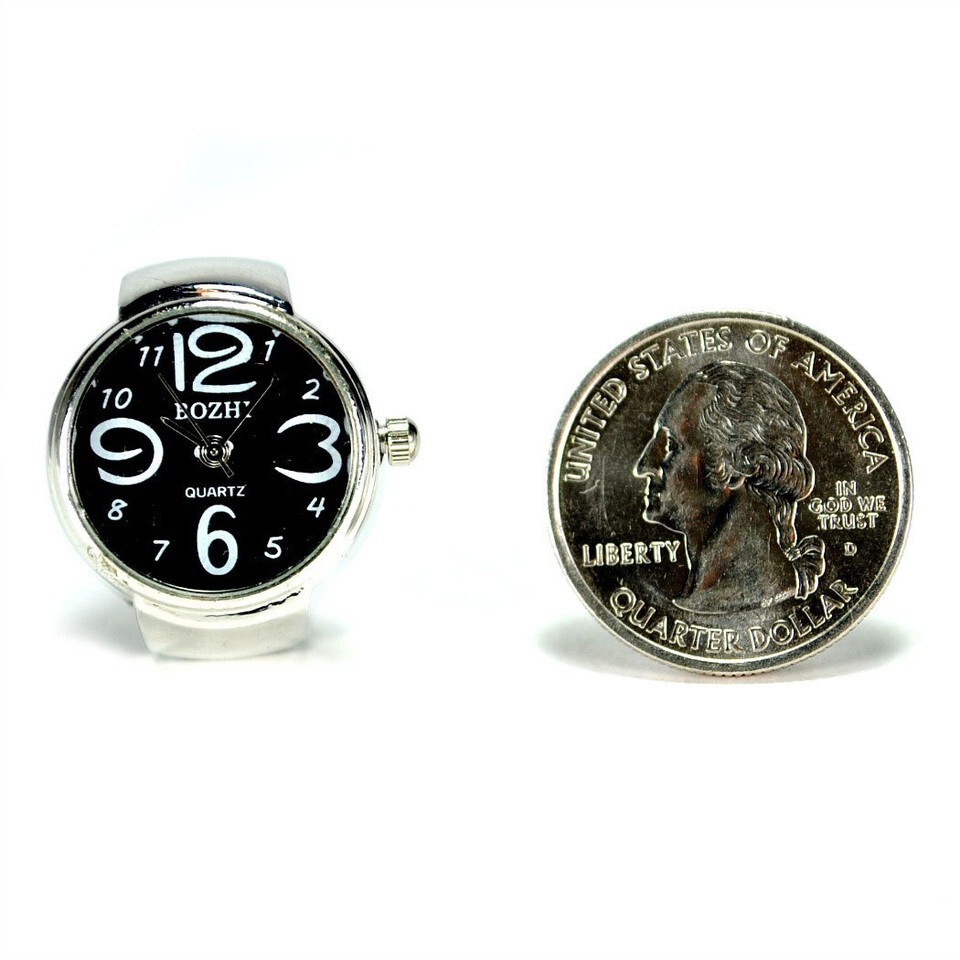WATCH RING Finger Stretch Band Chrome Time Jewelry NEW Large Number Black Gift