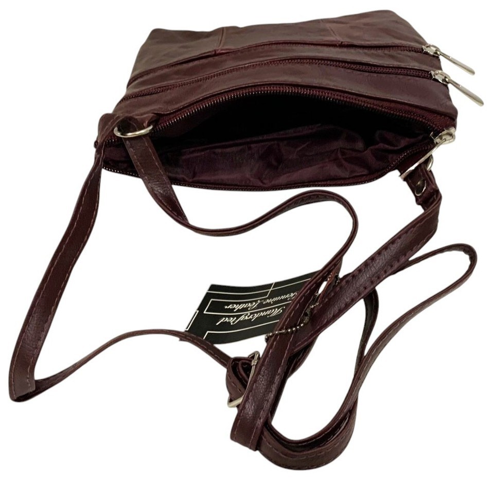 BURGUNDY Cowhide Leather Crossbody Shoulder Bag Organizer Handbag for Women