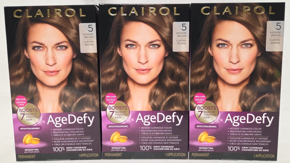 (3 Ct) Clairol Age Defy Permanent Hair Color Dye #5 MEDIUM BROWN