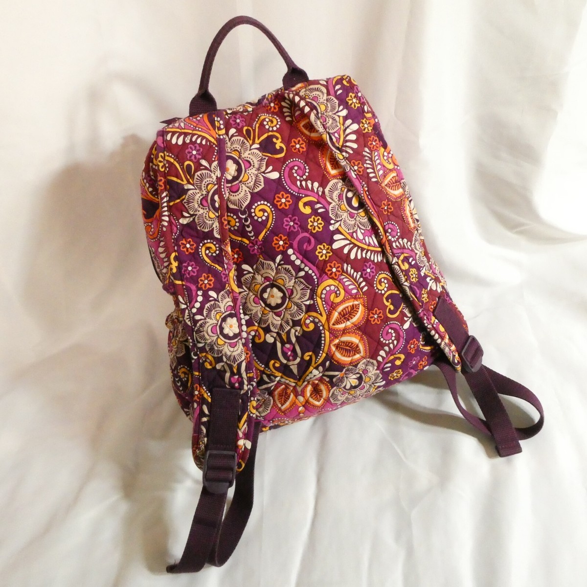 Vera Bradley Backpack Purse Safari Sunset Purple Floral Side Bottle Pockets