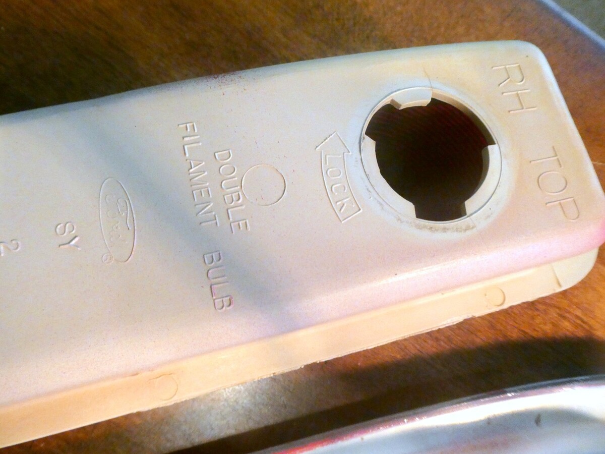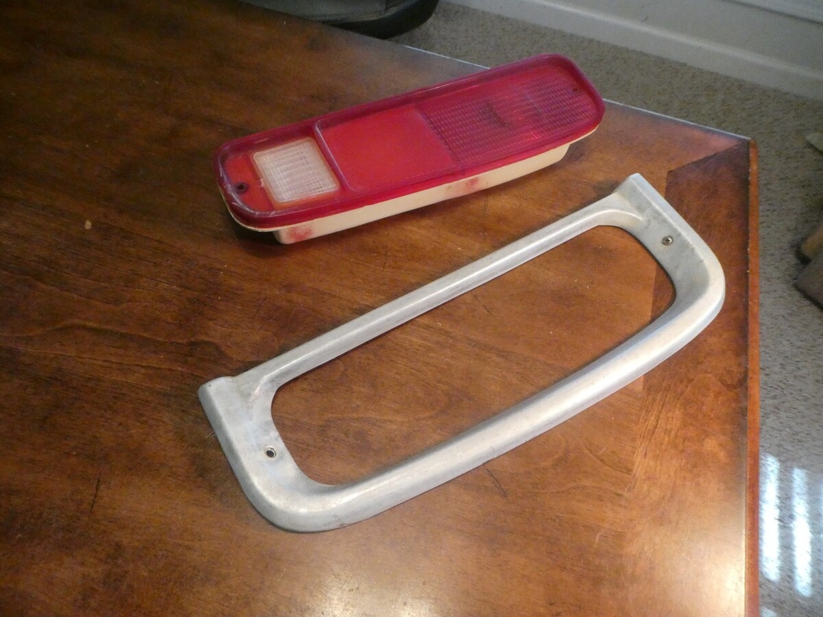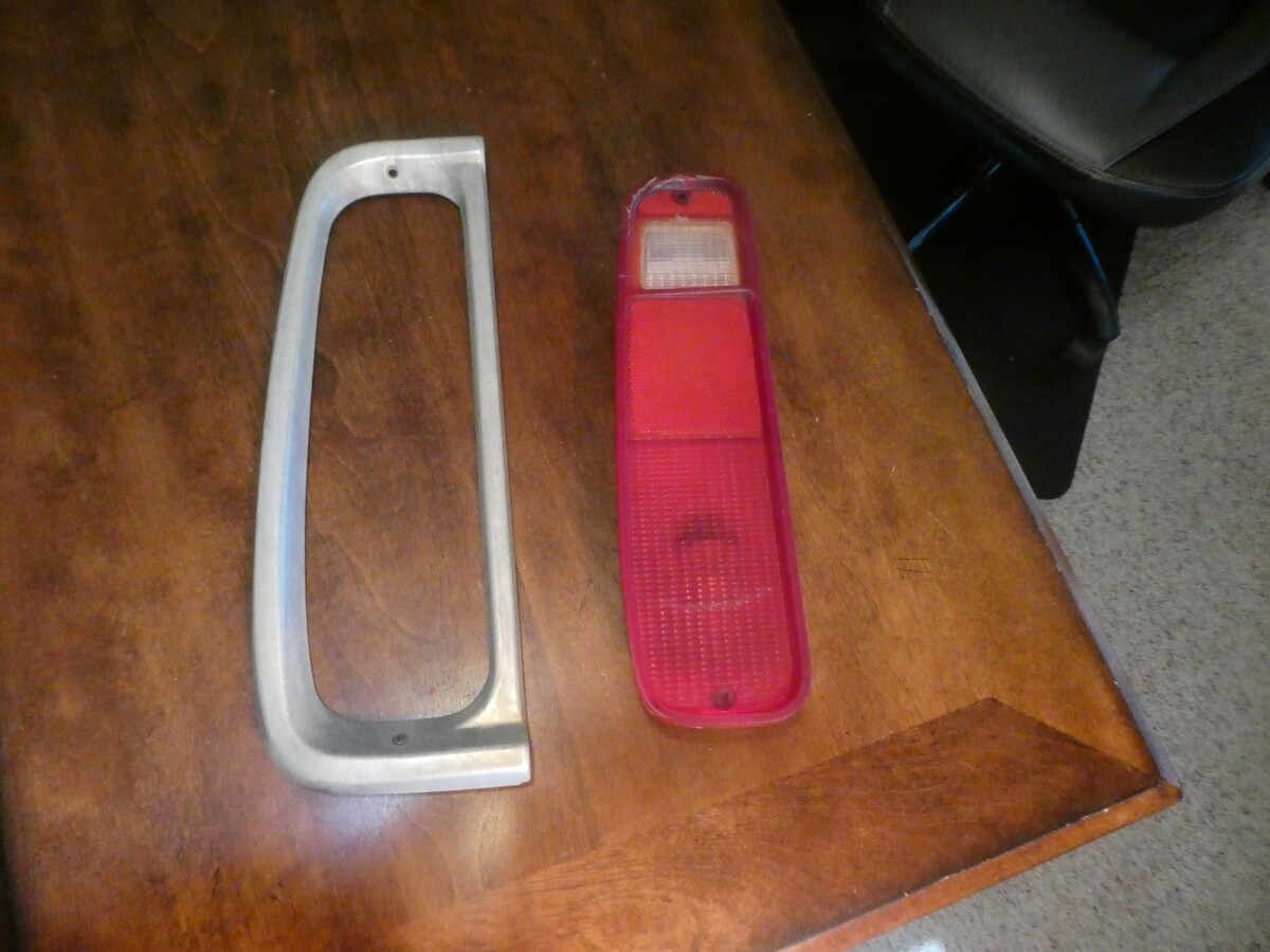 1973 1979 Ford Truck F100 Taillight Lens Housing with Bezel RT Hand passenger side. No dents or dings in the bezel that I can see, there are some scratches/ imperfections. Tail light housing has a small crack on the back side as shown in the pictures.