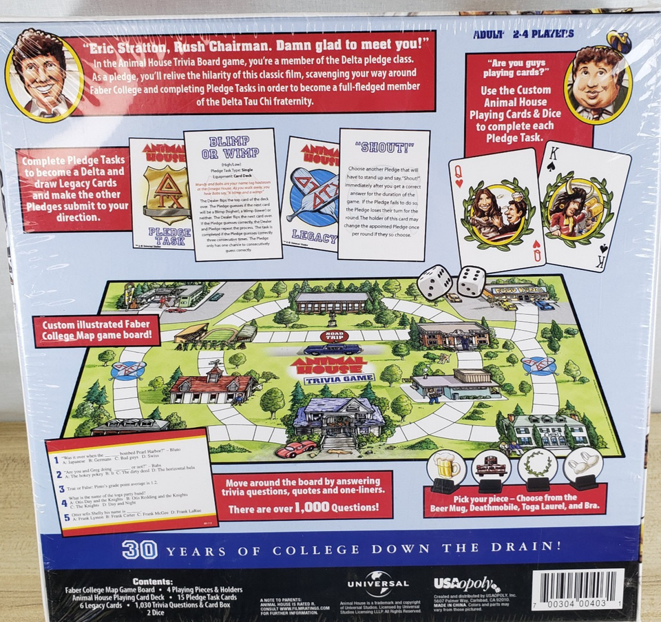 ANIMAL HOUSE Celebrating 30 Years of College Down the Drain Trivia Game NEW
