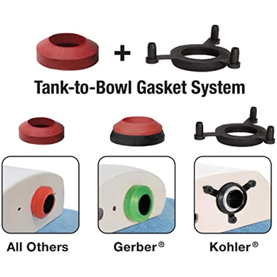 Universal tank-to-bowl gasket system included, for use with Kohler, Gerber and most any 2 in. flush valve toilet, Toilet tool included, Corrosion resistant flapper, 5 year warranty