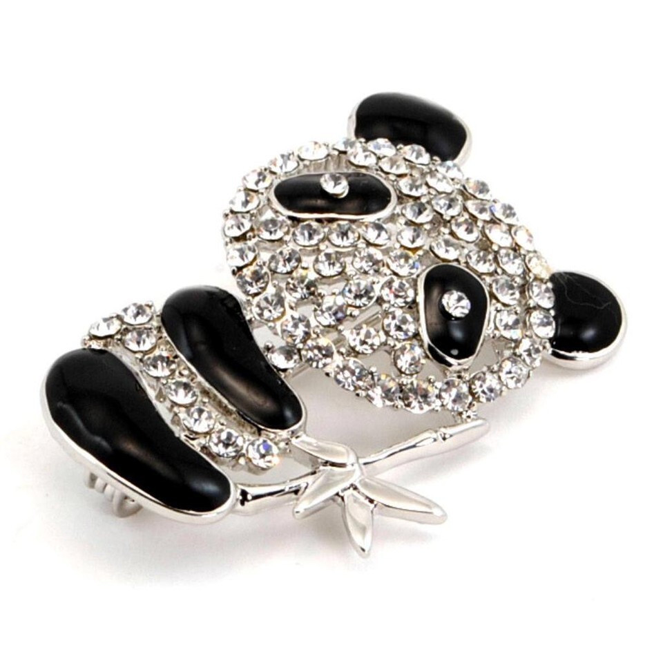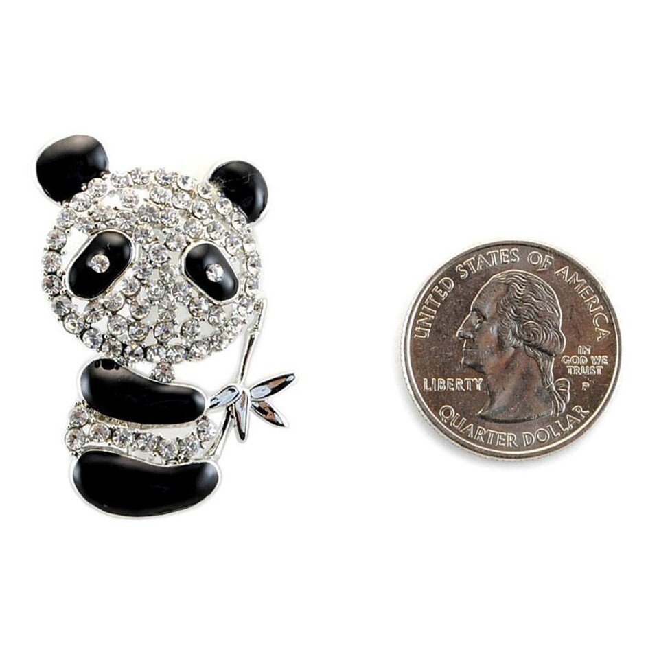 PANDA BROOCH 1.5" Cute Panda Bear Pin Sparkling Crystal Black Enamel Rhinstones