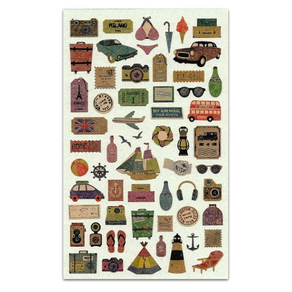 CUTE TRAVEL STORY STICKERS Sheet Car Plane Kraft Paper Craft Scrapbook Sticker