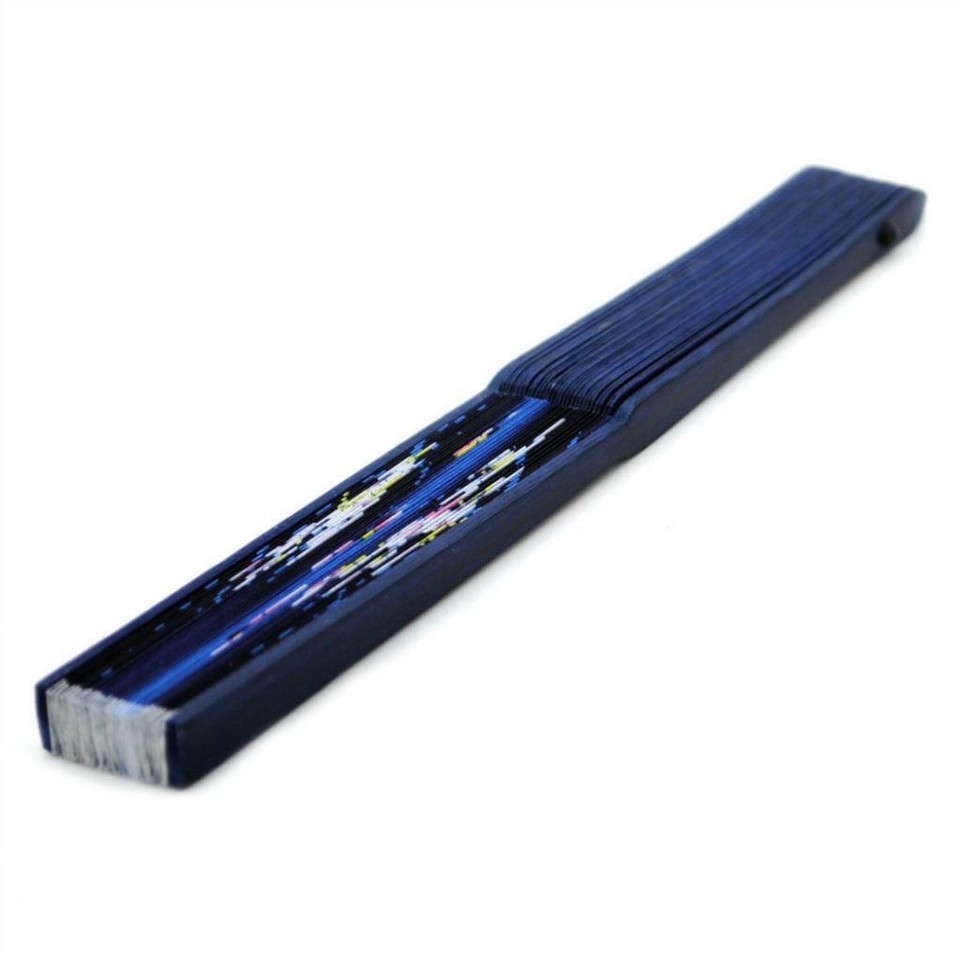 SILK HAND FAN 8" Blue Butterfly Lily Blossom Folding Pocket Purse High Quality