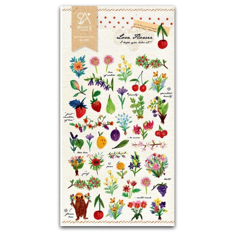 CUTE LOVE FLOWER STICKERS Garden Floral Paper Sticker Sheet Kids Craft Scrapbook
