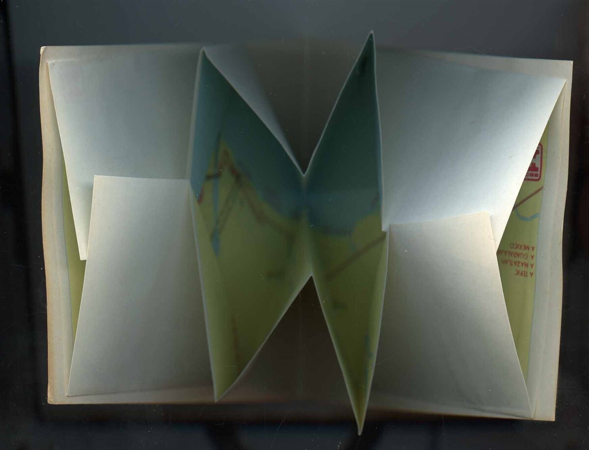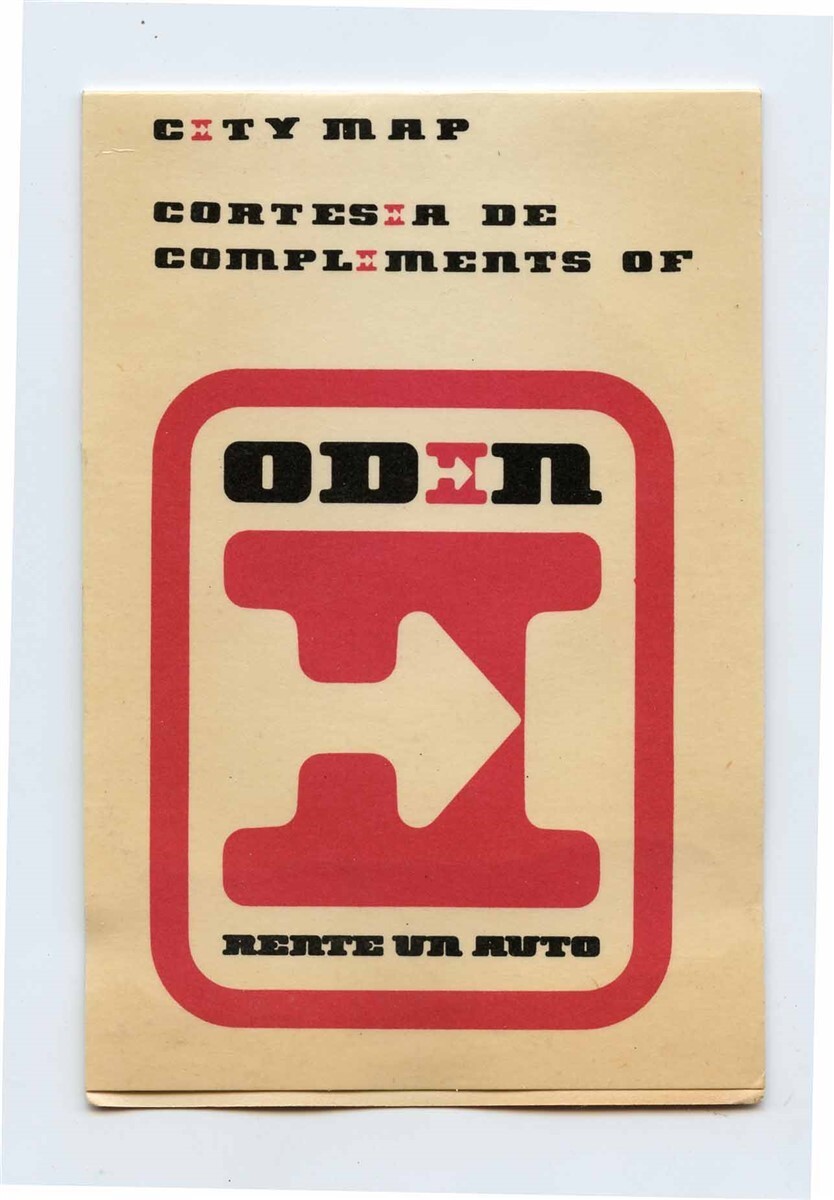 An interesting Pop Up Map in a folder from Odin Rent A Car with list of locations in Mexico . The map measures about 7 1/2" x 10" when open and about 3 1/2" x 5" when closed.