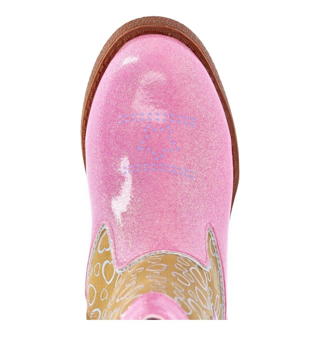 Charming Aesthetics: The boots boast a pretty pink color, plush material with heart accents, shimmer accents, and a Skye patch, all contributing to a revamped Western styling.