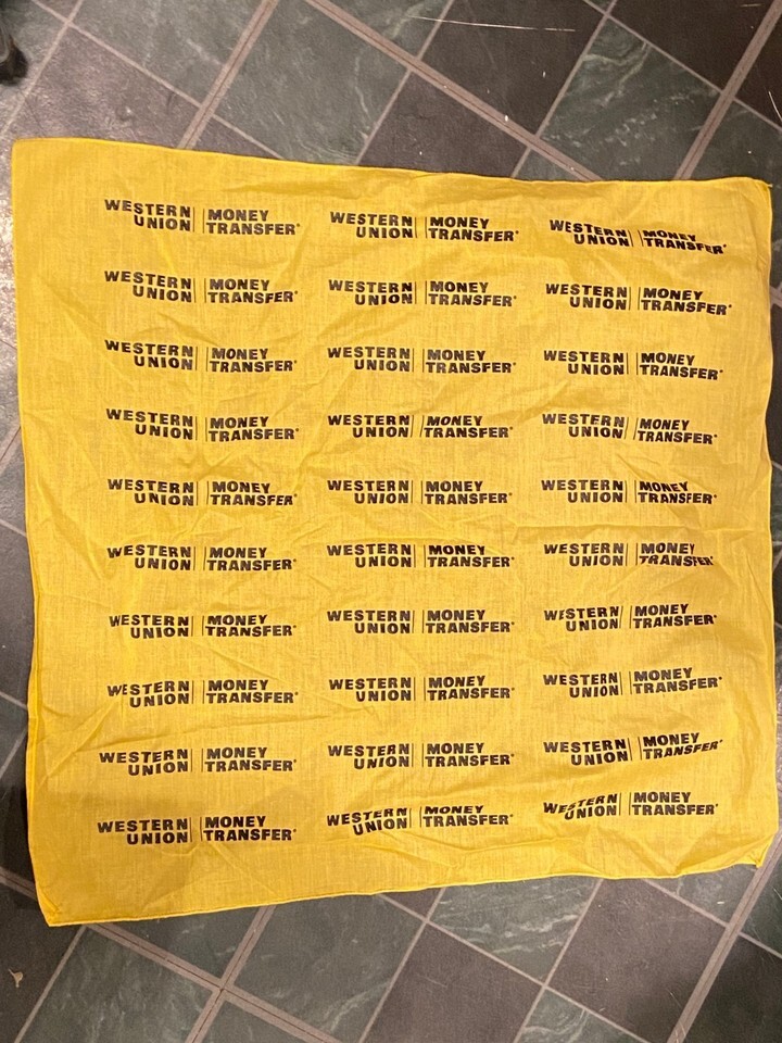 Western Union Money Transfer Yellow 21" X 20" Bandana *Pre-Owned* ff1