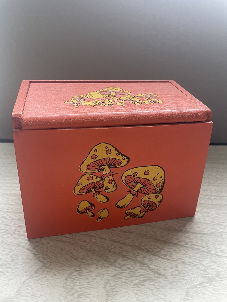 Vintage 70's Counterpoint Mushrooms Wooden Recipe Box