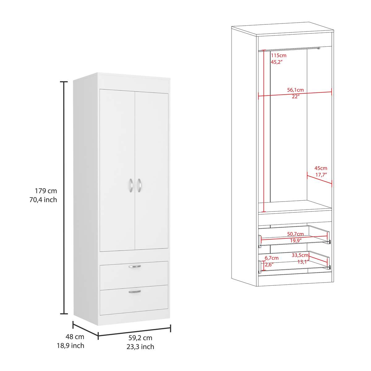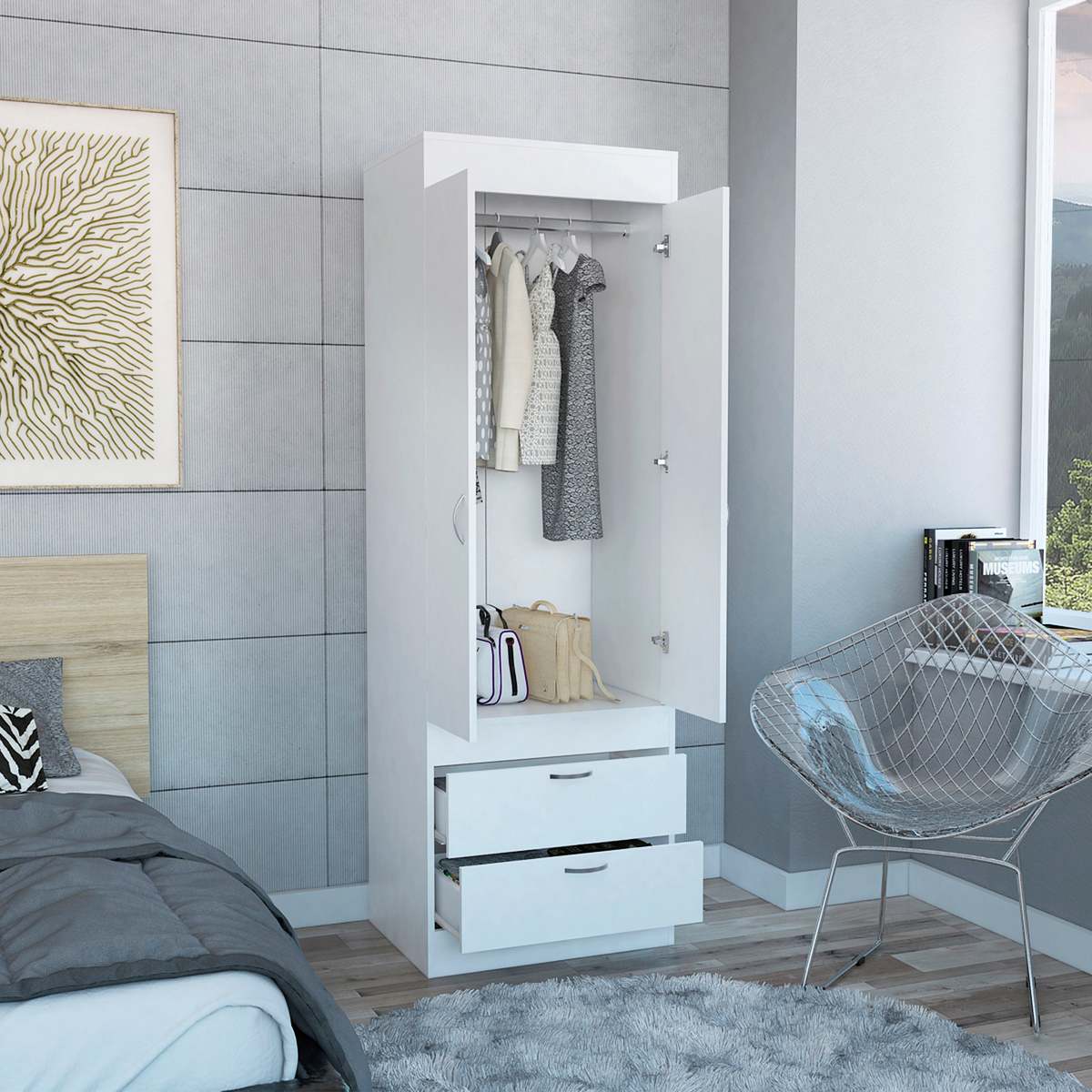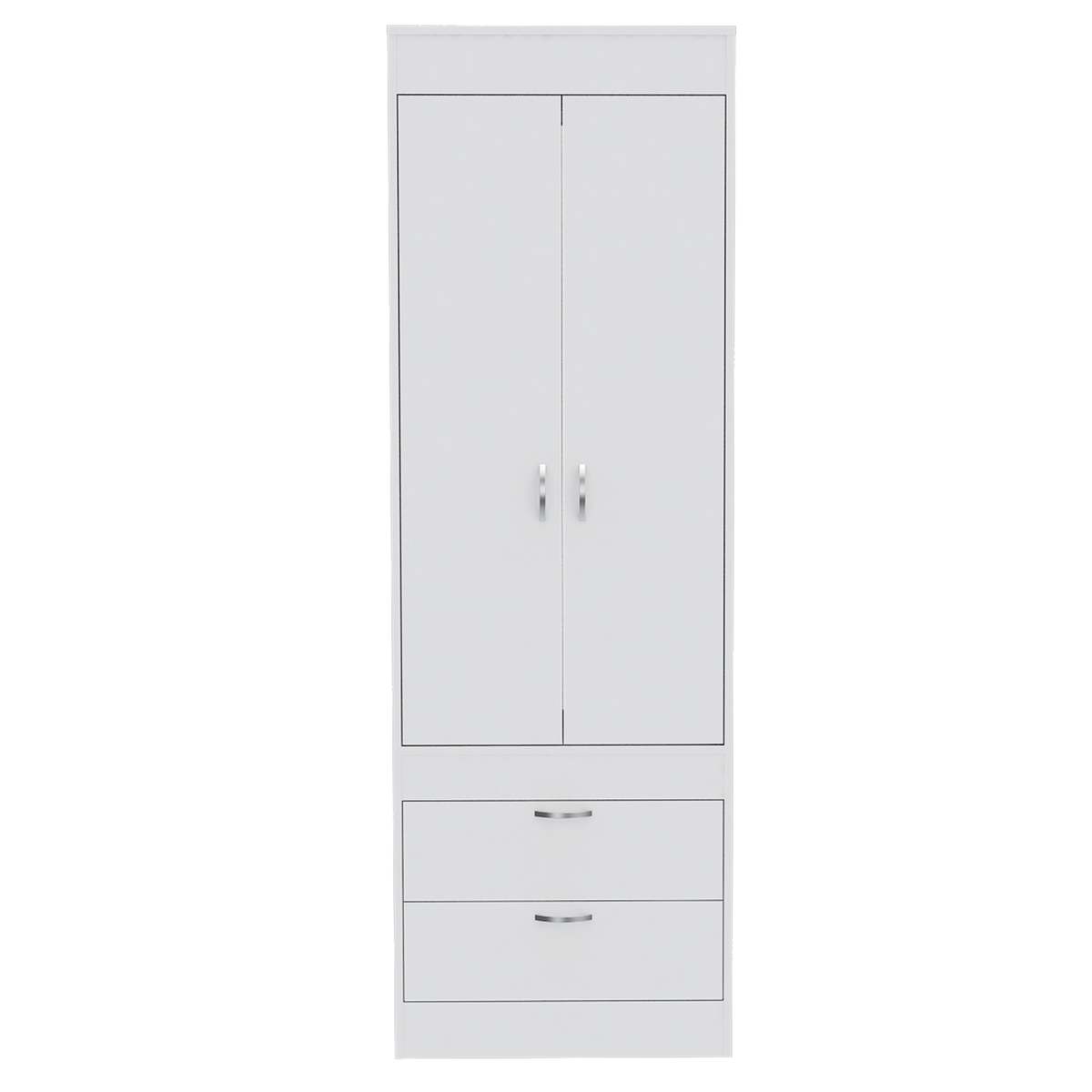 Lisboa White Double Door Armoire, Rod, Two Drawers