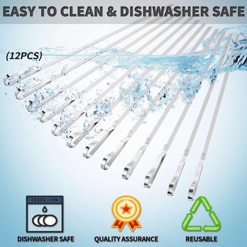 ?DISHWASHER SAFER, REUSABLE?The kebab skewers surface is smooth that grilled food residue won?t get stuck onto the kabob skewer blade. After each time?s use just threw them in dishwasher. After wash the metal stick will be like new. You can use again and again, totally save you money.