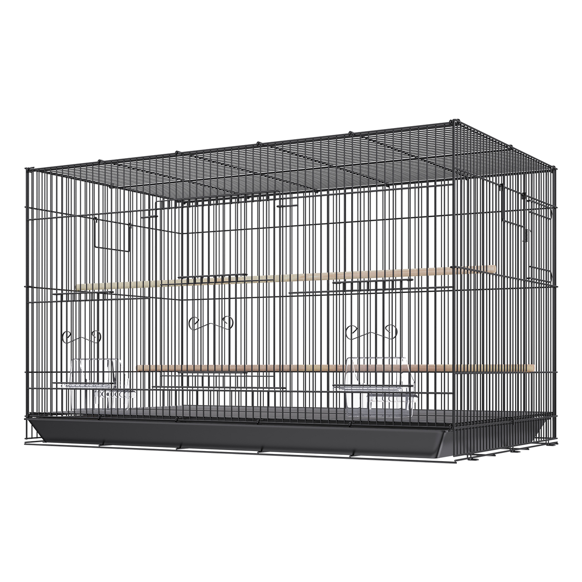Secure Door Design: The secure door makes the flight cage convenient for caregivers to open and close the cage, add food, water, or clean the enclosure. Additionally, the door prevents birds from accidentally escaping or flying out of the cage. It also allows for interaction, contact, and training with the birds, enhancing the fun of mutual engagement.