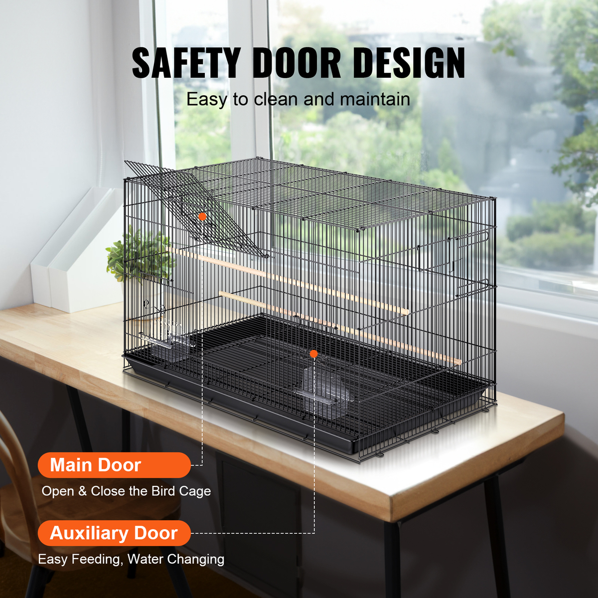 Easy to Clean and Maintain: The parrot cage features a detachable slide-out tray for easy cleaning. The mesh grating prevents pets from walking directly on waste but also prevents bird droppings from accumulating at the bottom. This ensures the birds' well-being and providing a convenient way to simplify maintenance.