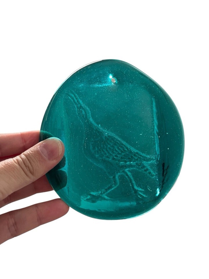 Blenko Glass Suncatcher Bird Turquoise Coastal Beach 4”