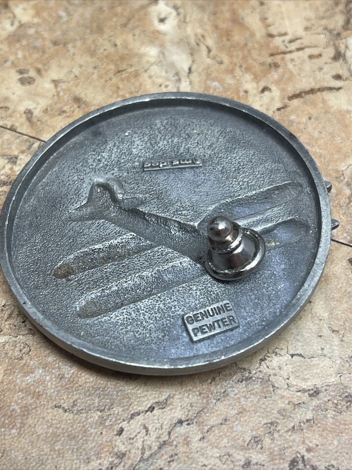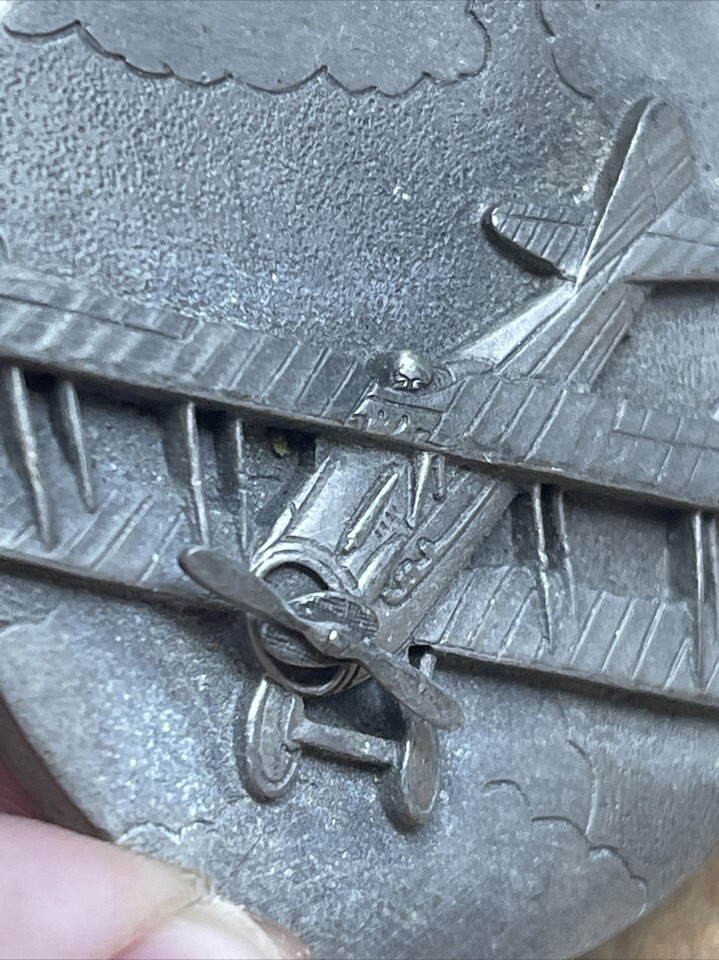 Vintage Ms. Dee Pewter Pin Tie Tack 2-1/4 Inches Spinning Propeller Airplane