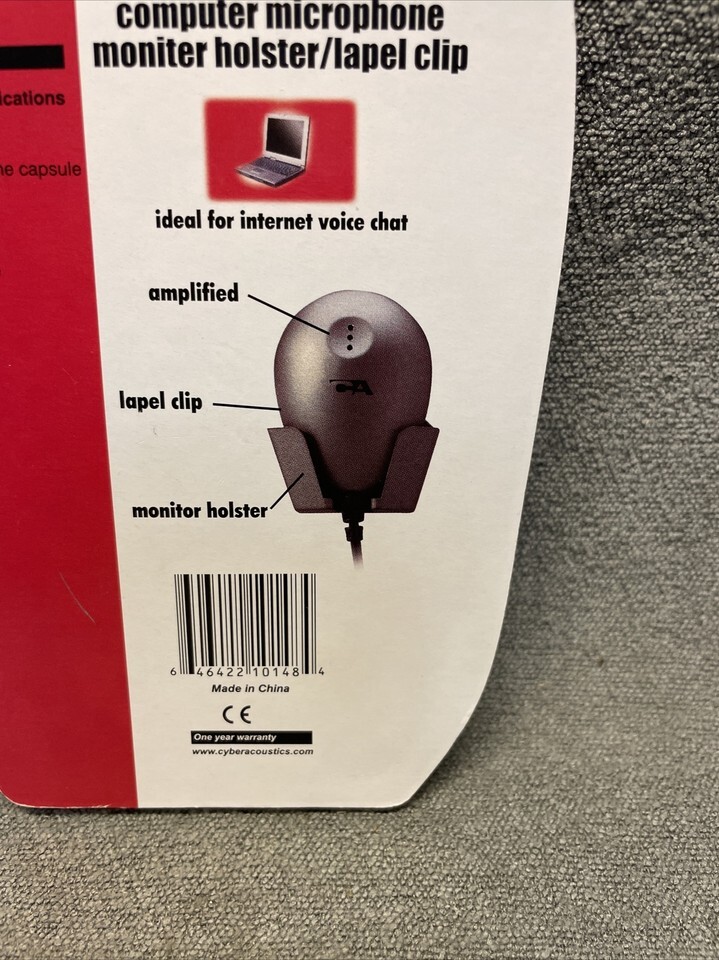 NEW Cyber Acoustics Computer Microphone MC-1000 Lapel Clip