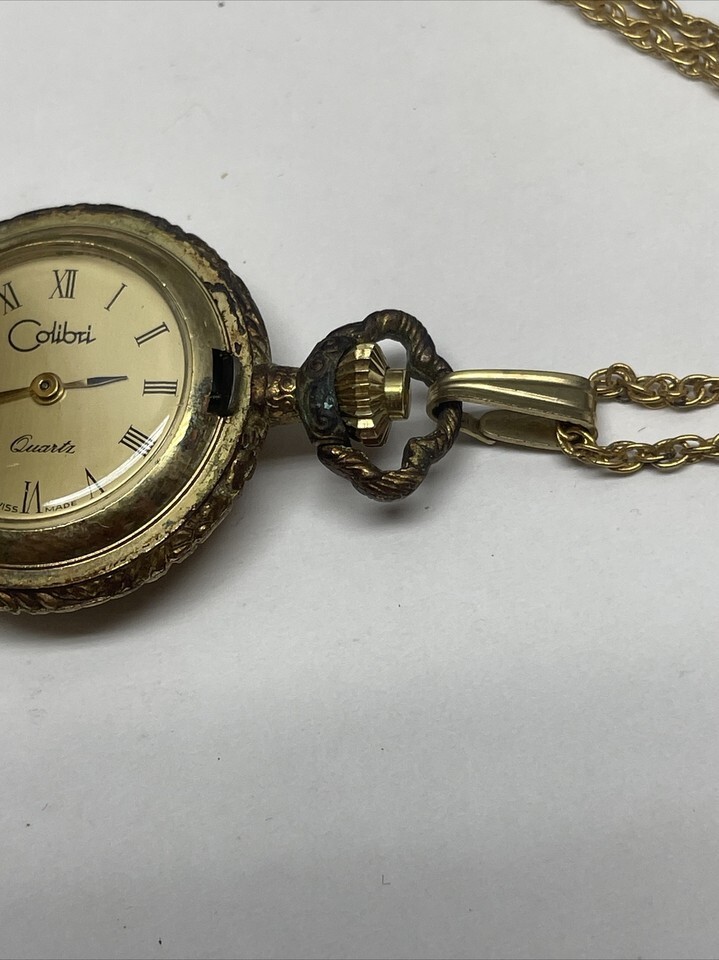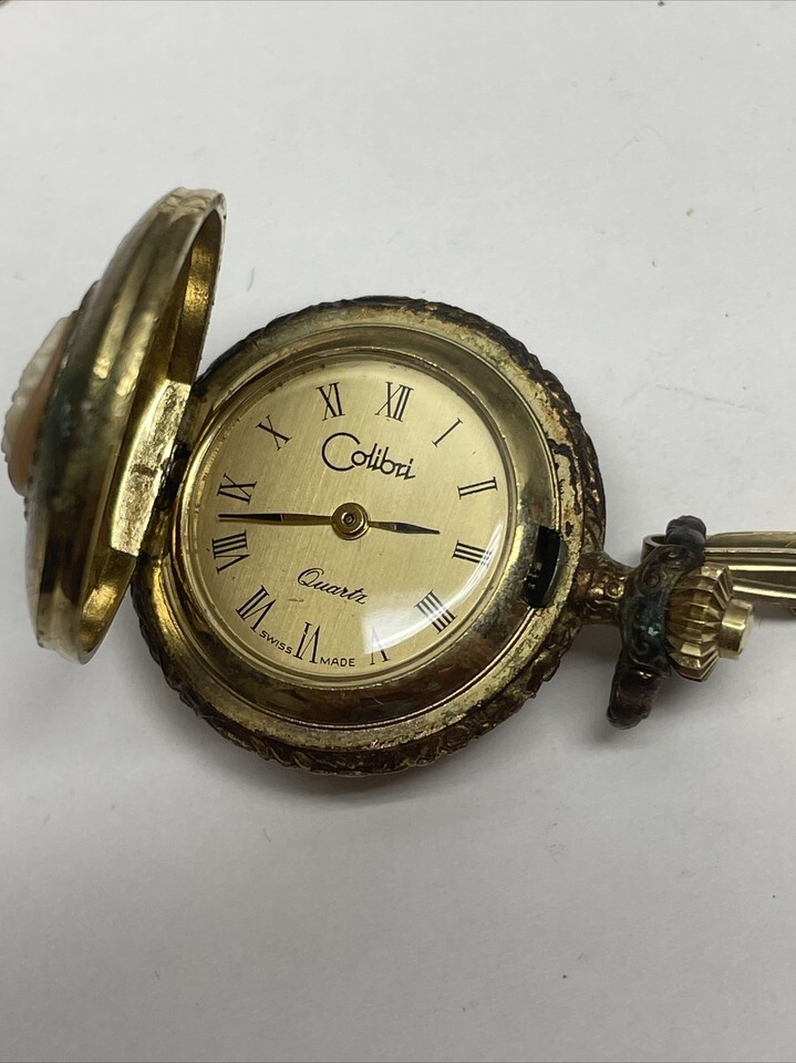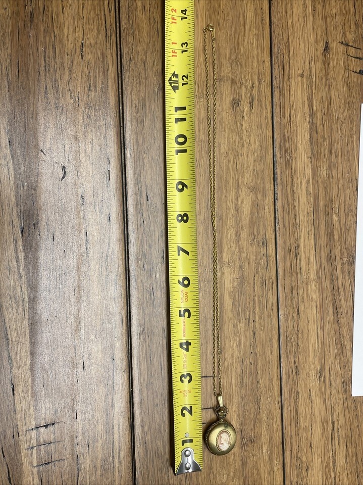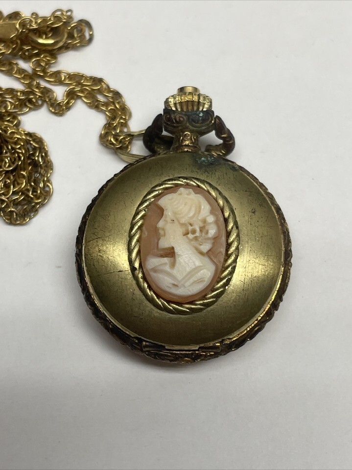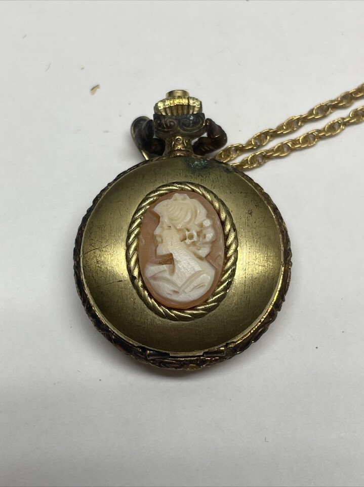 Vintage Framed Cameo Pendant Necklace Pin Long Calibri Quartz Swiss