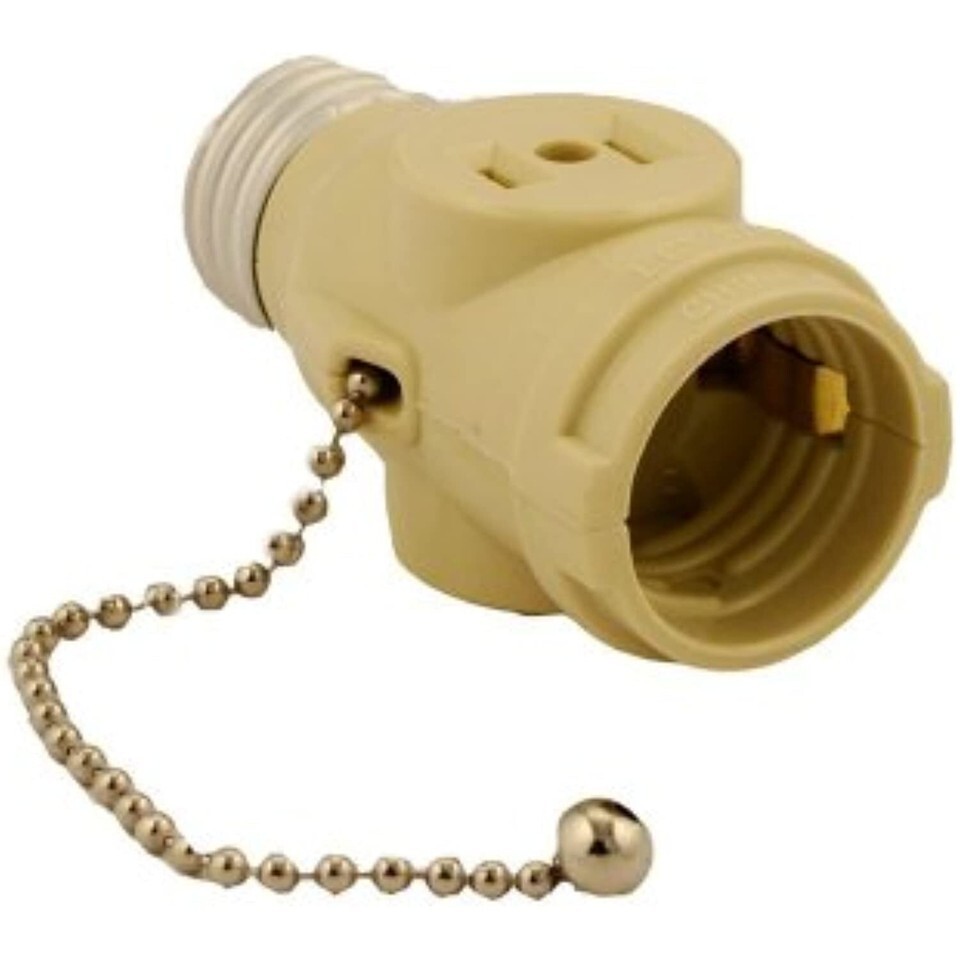 Product Description Leviton 1406-I Polarized Lamp Holder Adapter With Pull Chain And 2 Outlet, 660 W, 125 V, 1 Pack, Ivory From the Manufacturer Leviton Electrical Accessories for the home include taps and adapters, night lights and battery operated lighting. Every electrical accessory is subject to Leviton's strict in-house quality control and must meet or exceed applicable industry standards. 660 Watt, 125 Volt, Two Outlet With Pull Chain Socket Adapter, Ivory.
