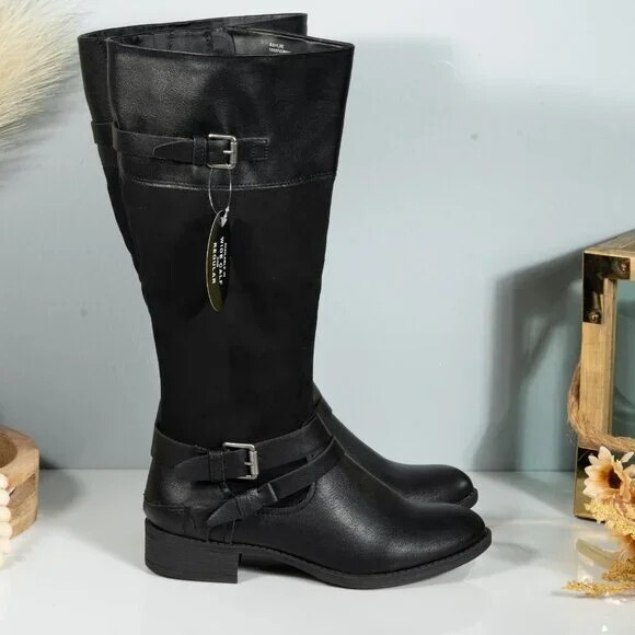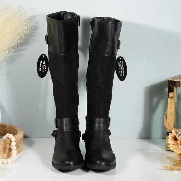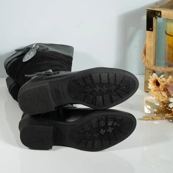 The STYLE COMPANY Women's Black Padded Ashliie Round Toe Block Heel Boots in size 6M are versatile for casual occasions and feature a round toe and zip closure. The low block heel offers comfort and stability, while the mid-calf shaft and rubber outsole provide durability. Made with textile fabric and man-made lining material, these boots are perfect for all seasons and come in a classic solid black color. Ideal for the everyday theme, these boots are a stylish addition to any woman's wardrobe.