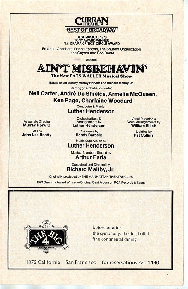 Playbill Ain't Misbehavin 1979 Nell Carter and 50 similar items