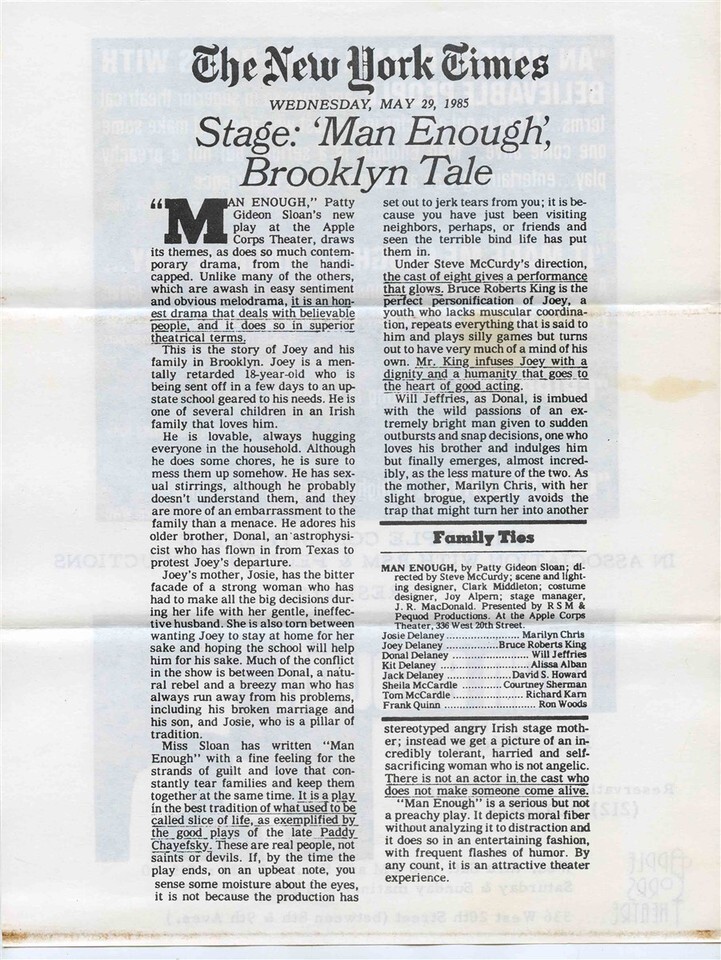 Man Enough Program Flyer Apple Corps Theatre New York 1985 Richard Karn