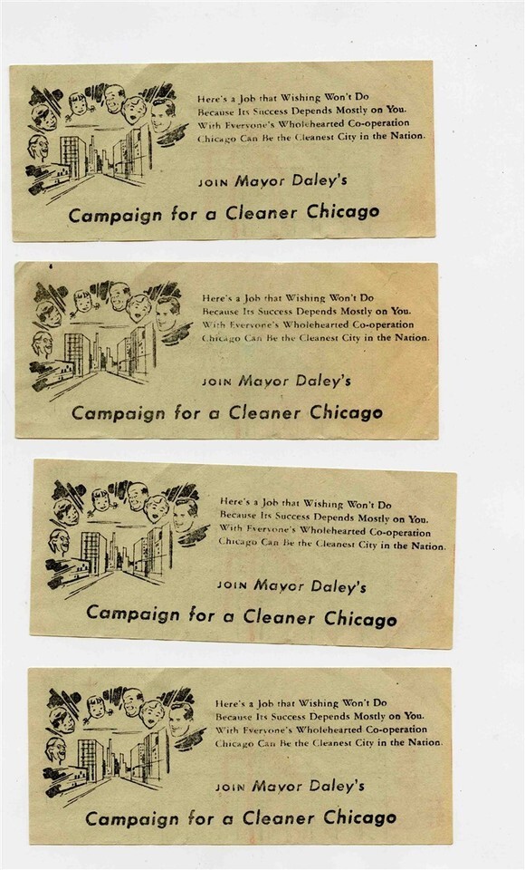 4 Chicago Transit Tickets Mayor Daley's Campaign for a Cleaner Chicago 1960's