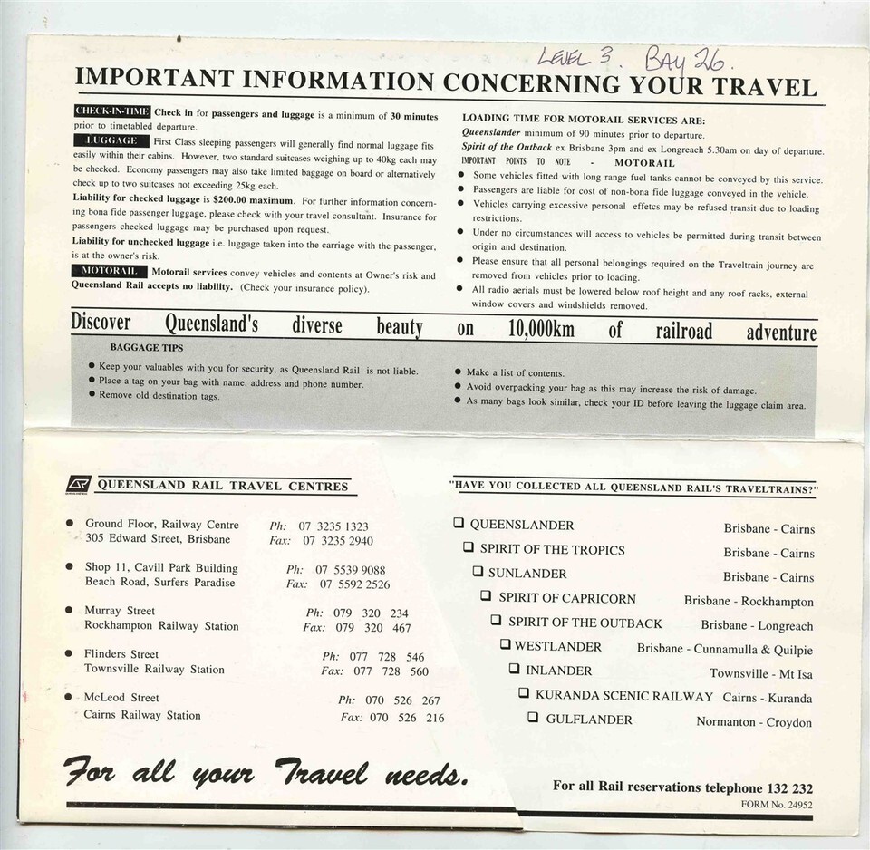 Traveltrain Queensland Rail Ticket Folder Tickets Spirit of the Outback