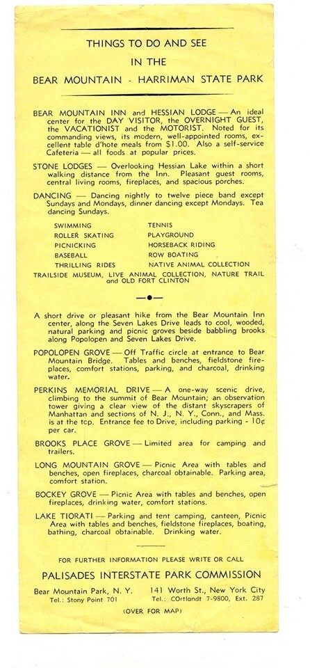 Bear Mountain Harriman State Park New York Map Things to Do 1950's