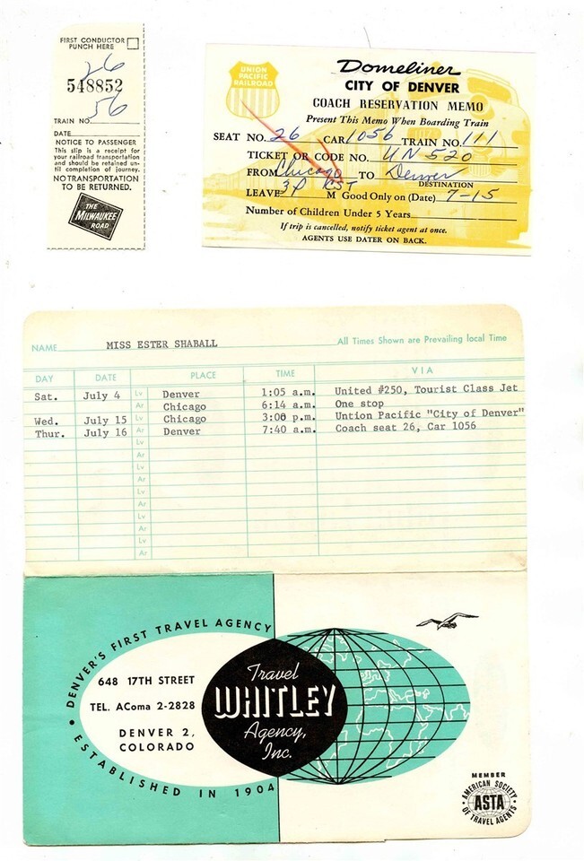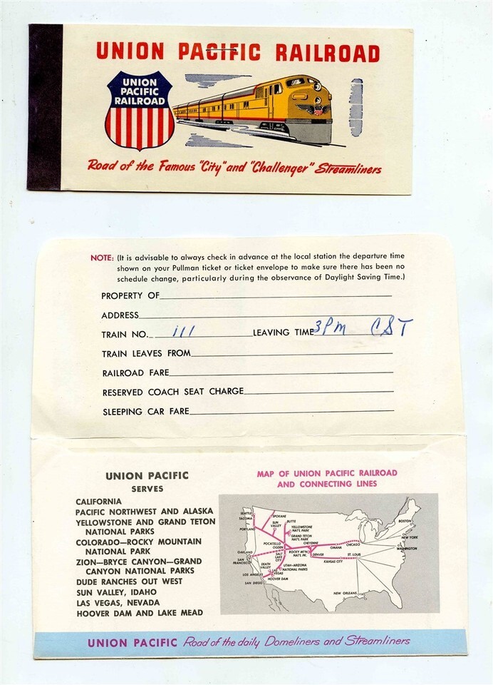 Union Pacific Ticket Jackets & Ticket & More Dome Liner City of Denver 1964
