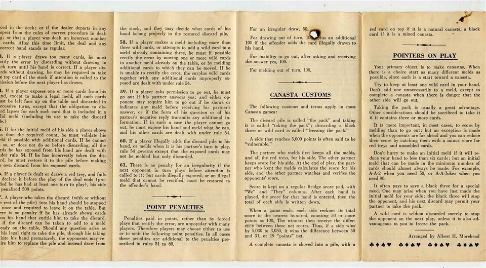 A 14 panel fold out brochure. Official Rules for Canasta Brochure. Of the Association of American Playing Card Manufacturers.