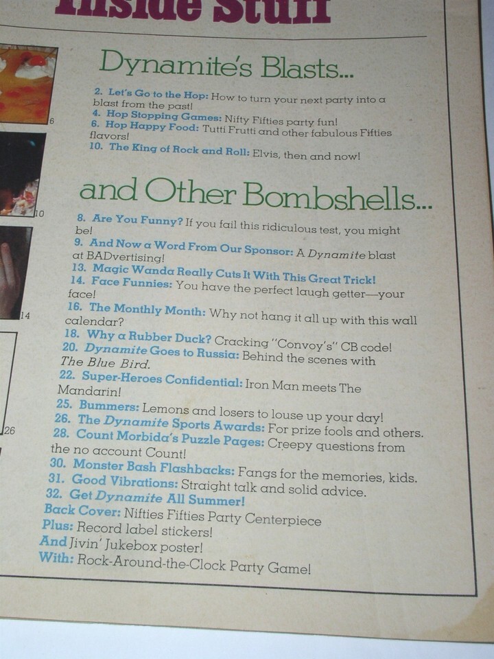 This is issue No 24 (1976) of the pre-teen magazine, "Dynamite". A terrific item for the fan or collector.