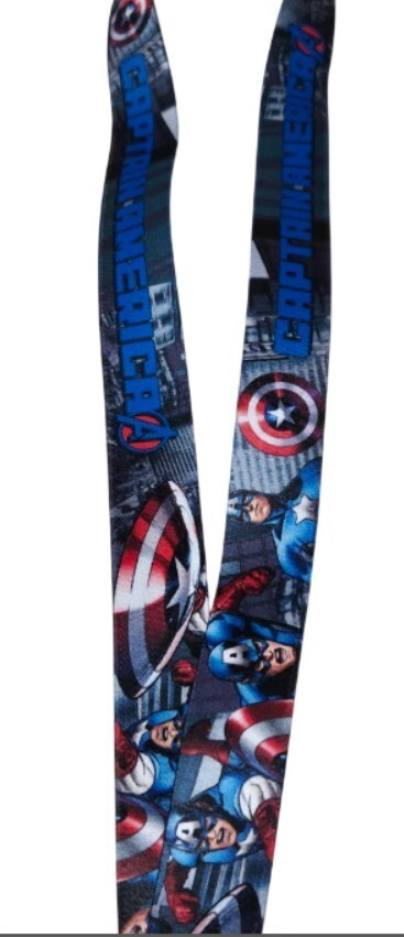Made from durable nylon material, this lanyard showcases graphics of the popular superhero Captain America.