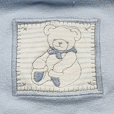 Keywords: baby gown, sleep sack, layette, newborn, teddy bear, embroidered, baby boy, blue, long sleeve, cotton, infant, snap, easy change, soft, vintage, retro, nostalgia, nostalgic