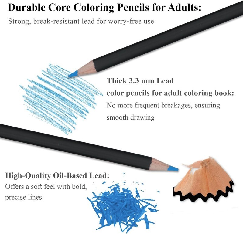 === Durable yet flexible 3mm cores that sharpen easily without breaking, making them ideal as coloring pencils for adults