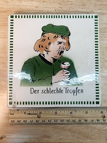 Antique German 6" Ceramic Trivet Der schlechte Tropfen "The Bad Drop" TBIC 7468