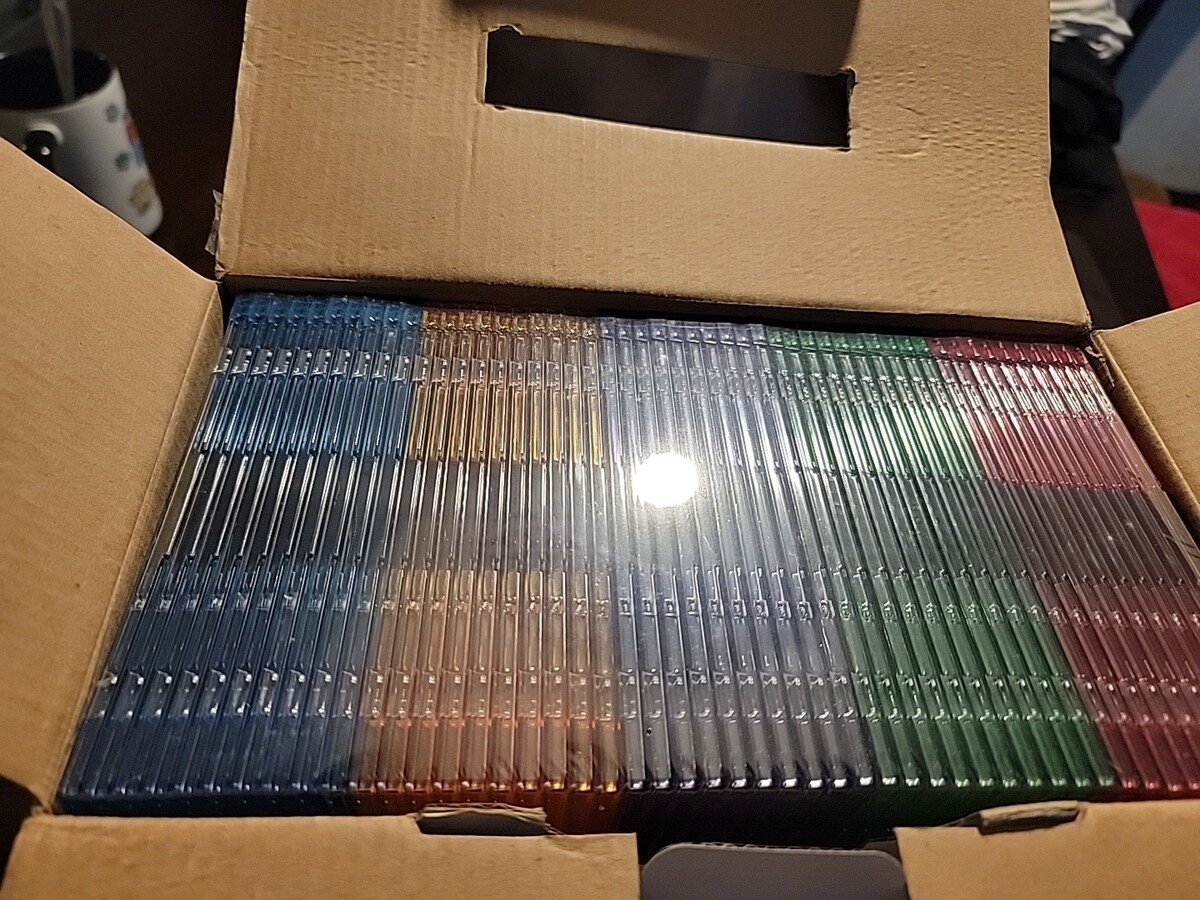 100 NEW Staples Slim Jewel CD Cases Assorted Colors New in open box