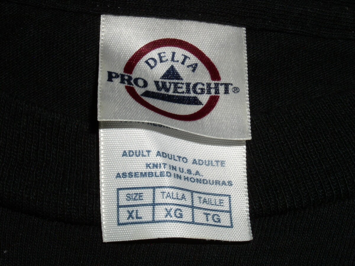 This is a vintage t shirt entitled, "Pink Floyd Dark Side Of The Moon". Undated, vintage unknown. I've had this for over 15 years. Tag reads: Delta Pro Weight. There is no back printing. It is double-stitched. A terrific item for the fan or collector.