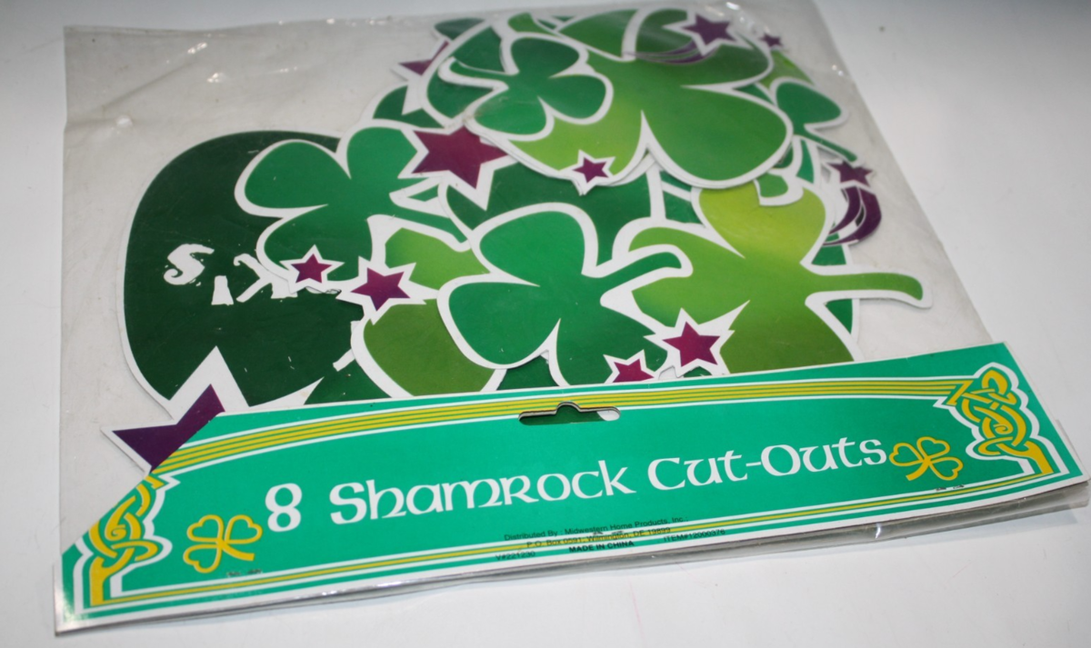 St Patrick's Day, Holiday Shamrock, (8) Paper Cut Out Decorations, NEW in Package, Midwestern Home Products