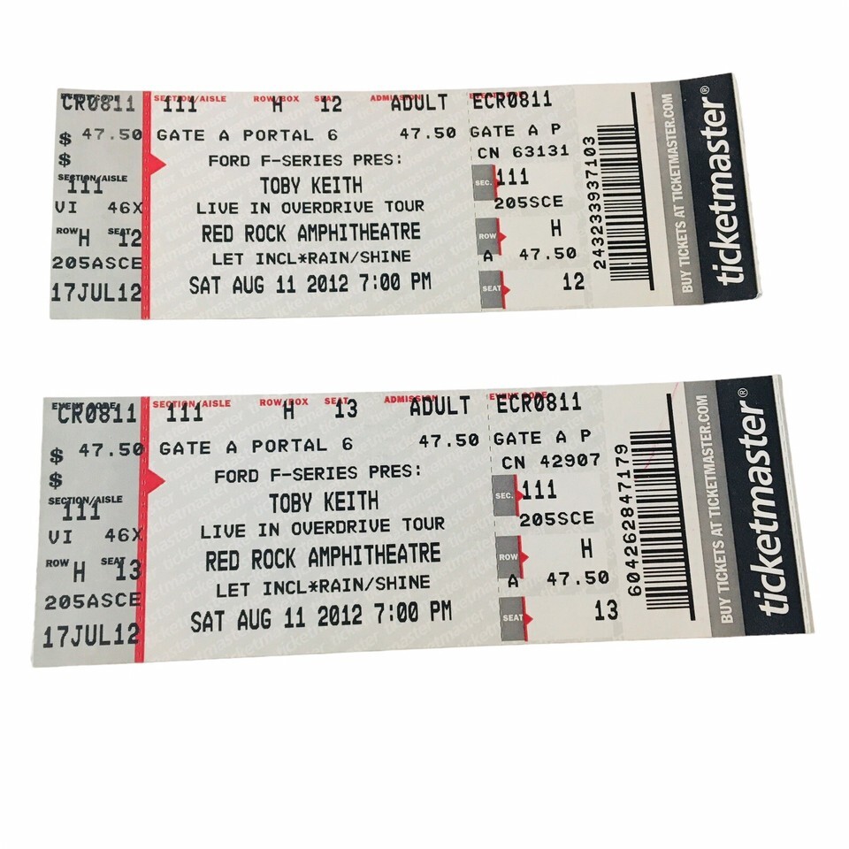 Toby Keith Concert Ticket Stubs Lot of (2) Red Rock Ampitheatre Las Vegas 2012